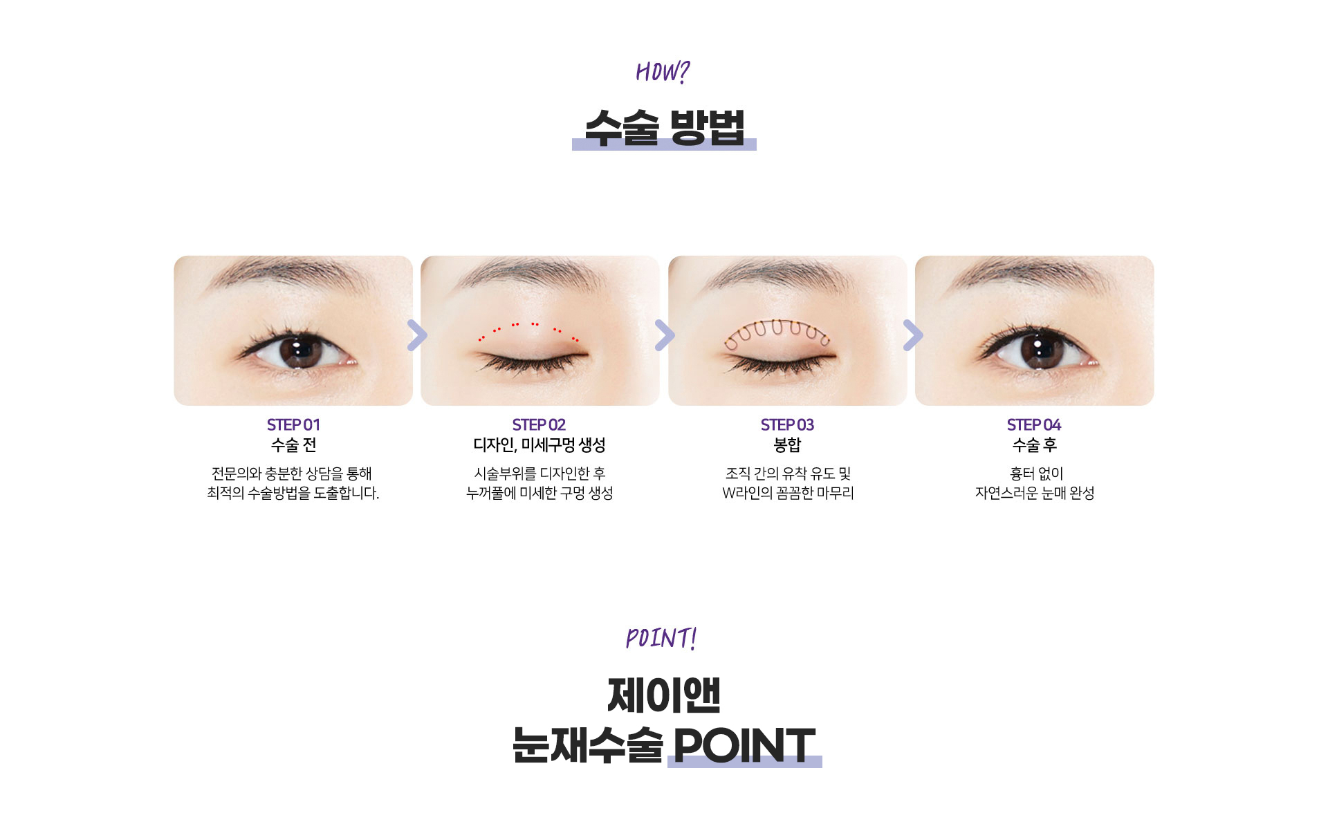 눈 성형에 대한 해부학적 지식과 임상경험이 풍부한 전담의료진이자연스럽고 또렷한 눈 완성